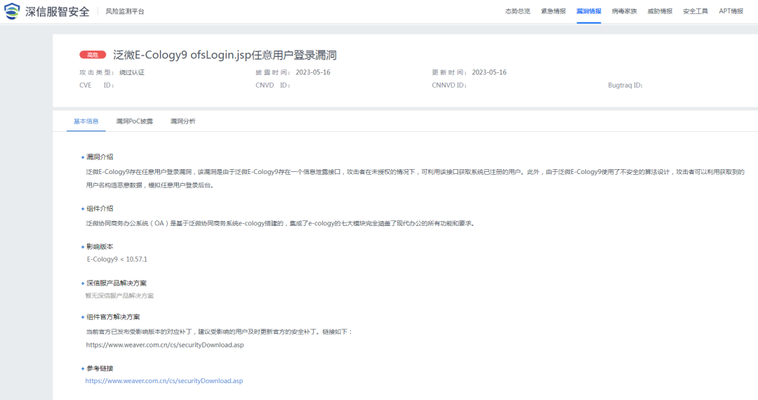 点击阅读原文,及时关注并登录深信服智安全平台,可轻松查询漏洞相关解决方案。