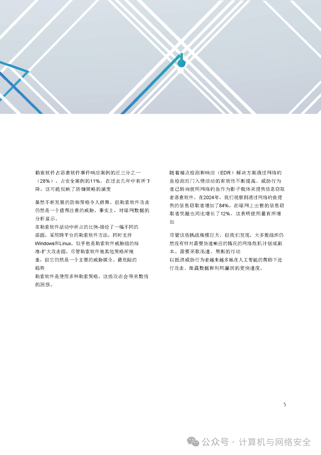 尽管勒索软件占恶意软件事件的28%,但总量下降。国际执法行动迫使攻击者放弃大型僵尸网络(如TrickBot),转向短周期恶意软件。同时,攻击者更多采用数据窃取替代加密,以降低暴露风险。