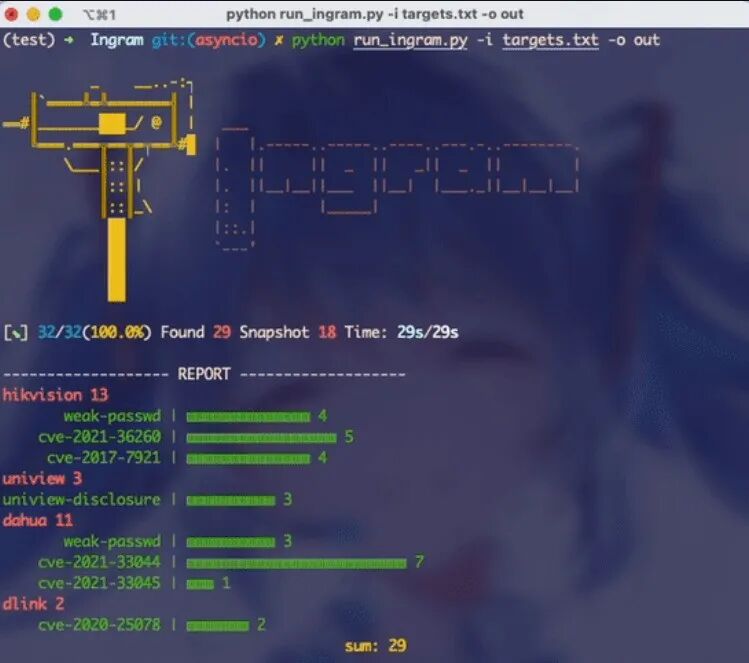 之前我在一次hvv行动中,就遇到要对一批网络摄像头进行漏洞排查的任务。要扫描的设备数量不少,涵盖了海康、大华、宇视、dlink 这些常见品牌。我就想着得找个高效的工具来完成这个任务,后来就发现了 Ingram 这个开源的网络安全工具。