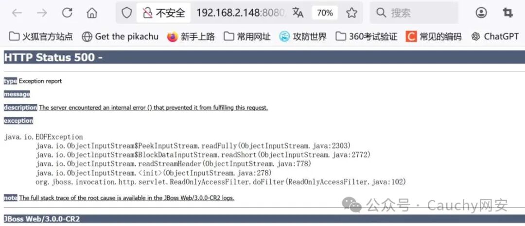 返回 500,一般就可以认为反序列漏洞存在检测发现漏洞