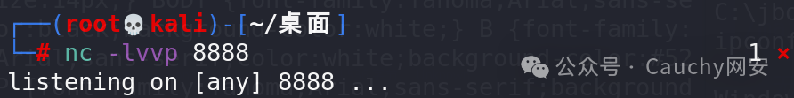 前面已经上传了jsp木马,蚁剑成功连接上了,先在kali开启监听窗口