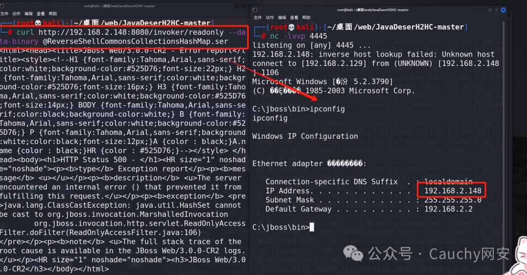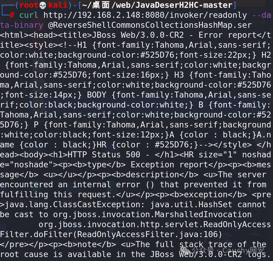 Jboss反序列化漏洞(CVE-2017-12149)漏洞复现nc与javaDeserH2HC反弹shell