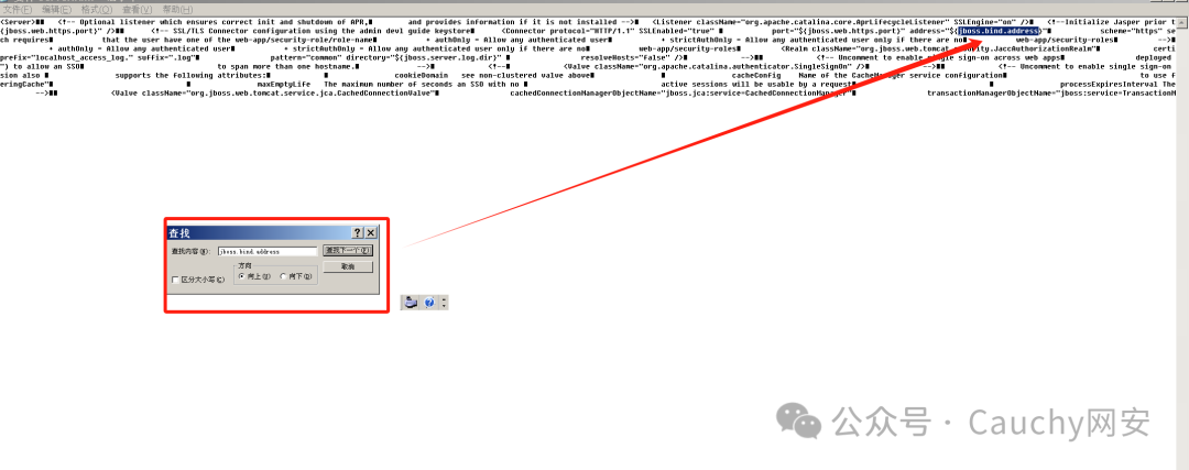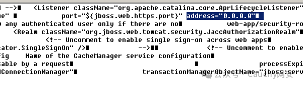 接下来做一些设置,找到 server.xml 文件,修改 ip 地址和端口,修改之前先备份一下 通过记事本打开这个 server.xml 文件,找到 ip 地址配置。将这个${jboss.bind.address}改为 0.0.0.0 即可。如果想改端口的话,将 8080 改为 80 即可(不建议)。保存之后关闭,然后重新运行 jboss 。