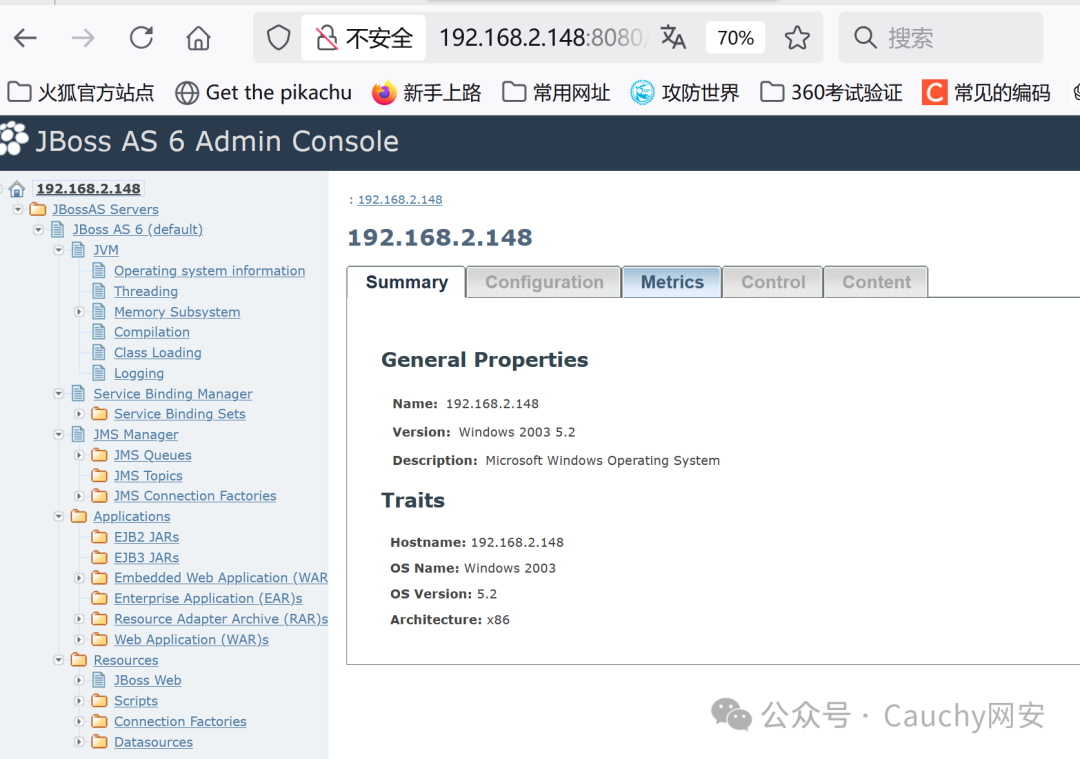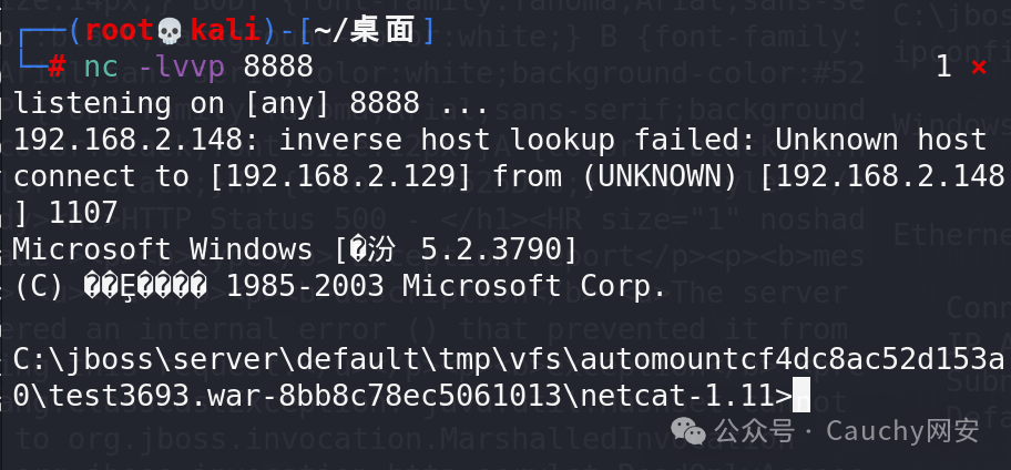 搭建jboss:win2003:(192.168.2.148) 攻击机:kali(192.168.2.129)