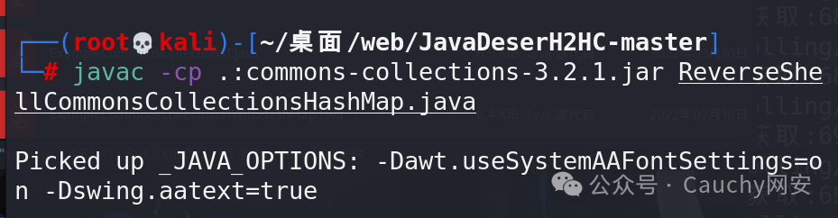 为了保证连接的稳定,就可以用我们的测试利用工具进行反弹:JavaDeserH2HC(需要安装配置jdk环境)