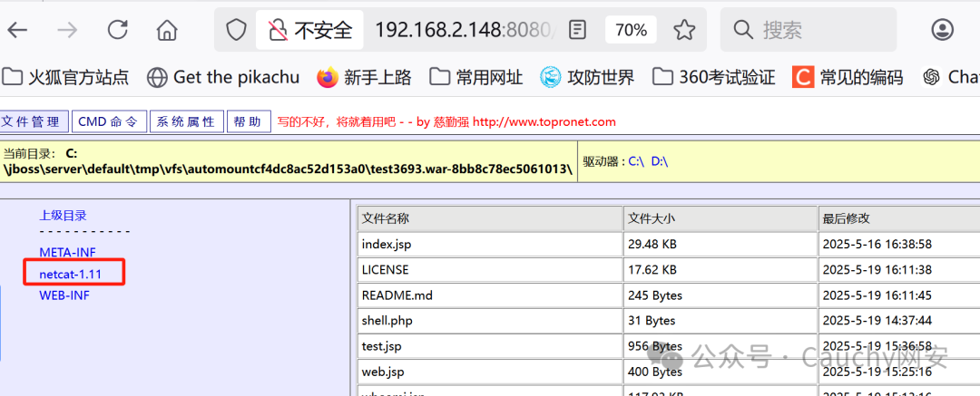 我们先把nc上传到win2003(受害机),下载地址:https://eternallybored.org/misc/netcat/