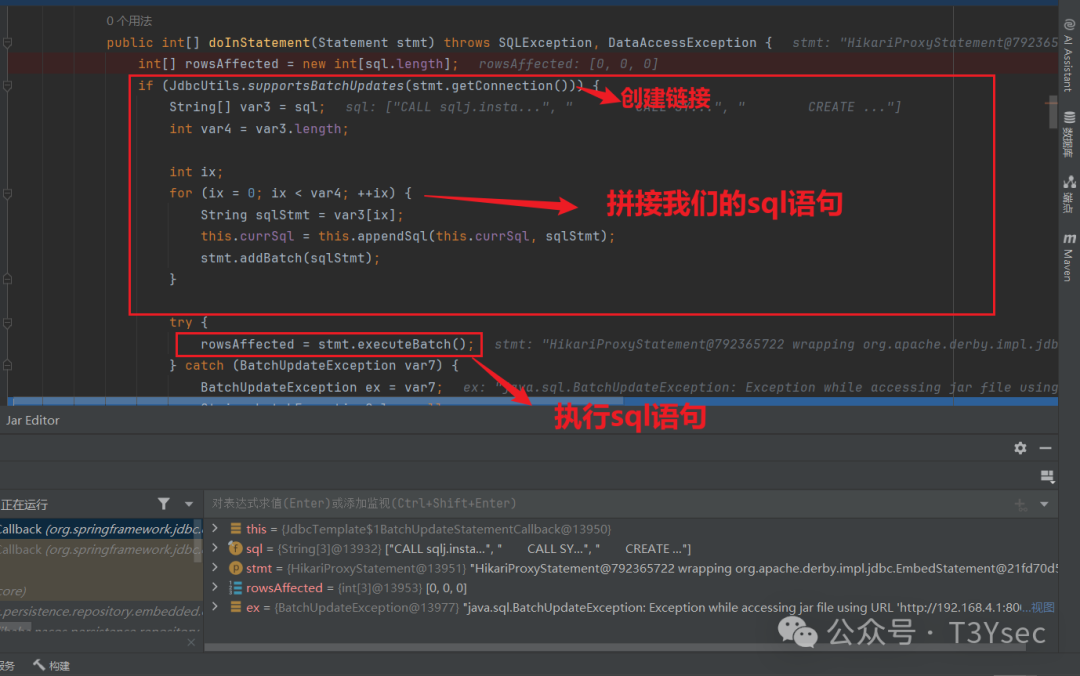 不断去whlie拼接sql语句(sql语句是恶意的derby语句)