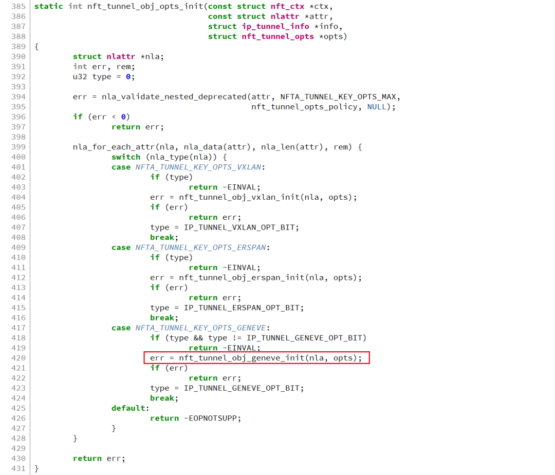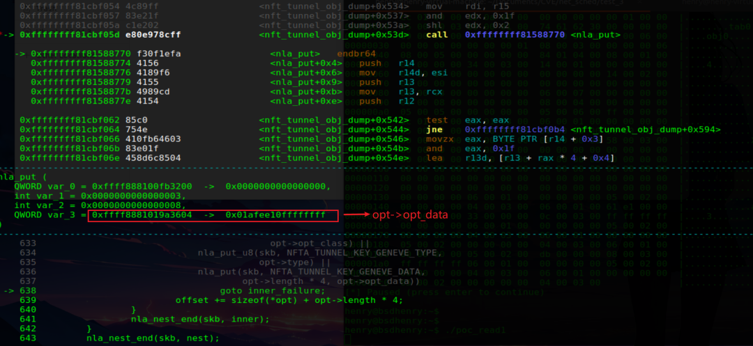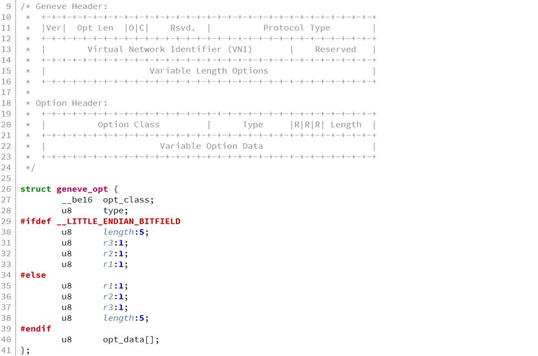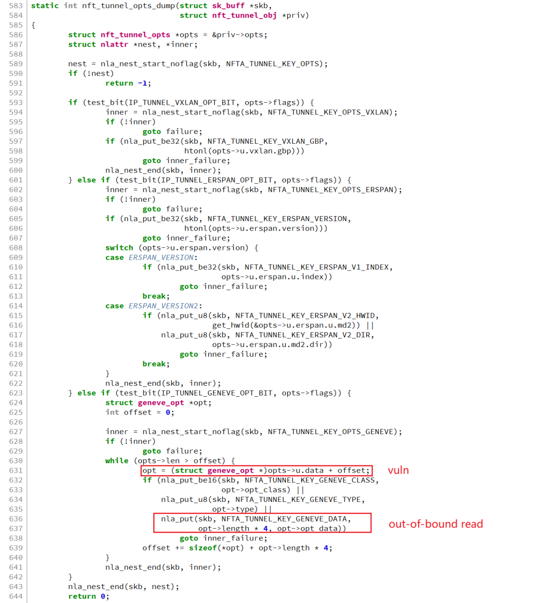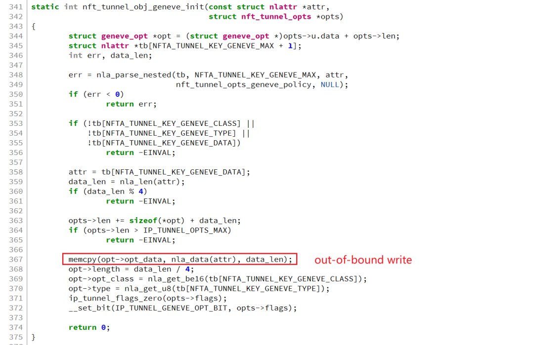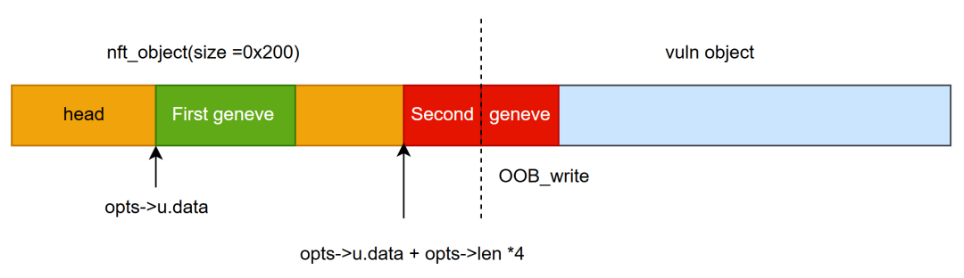 (结构体 geneve_opt 的大小为 4 byte),间接导致在后面的