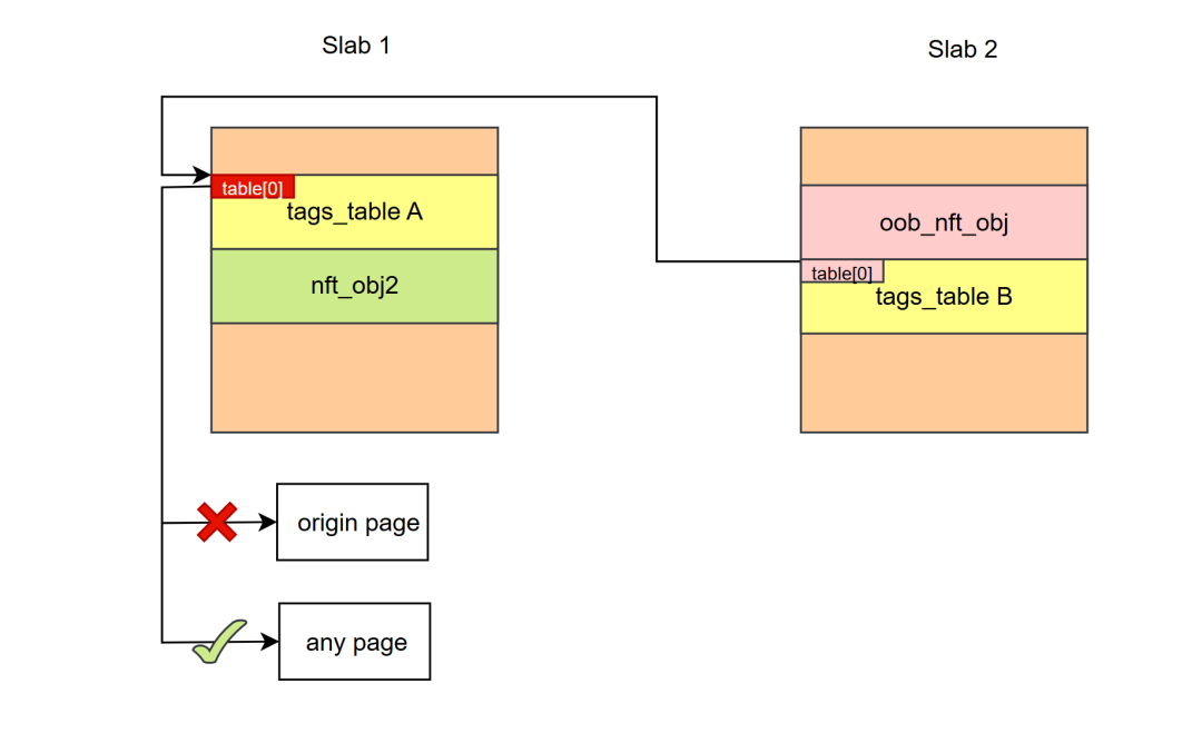 向tags_table A的table[0]写入任意地址,最后再用tags_table A的table[0]向该地址写入任意值。