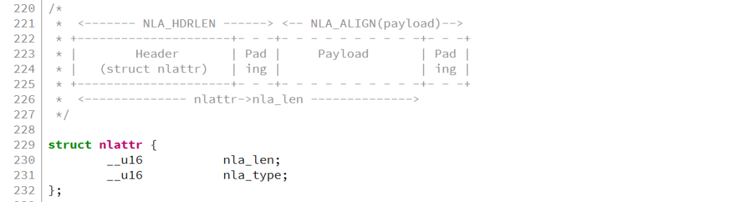 该结构体是 Linux 内核网络子系统中 Netlink 协议使用的基本属性结构体