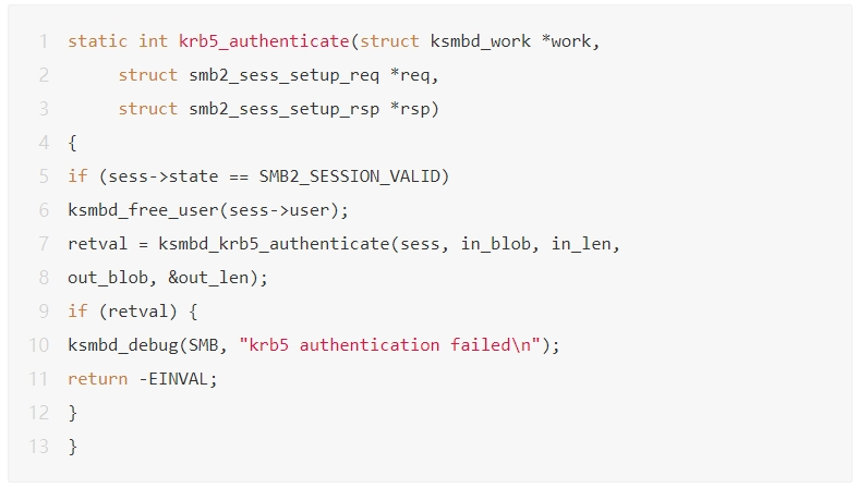 在此之前,Sean以他人工发现的另一个漏洞 CVE-2025-37778(Kerberos认证路径的use-after-free)作为基准,利用该漏洞测试o3模型的分析能力。相关代码片段如下: