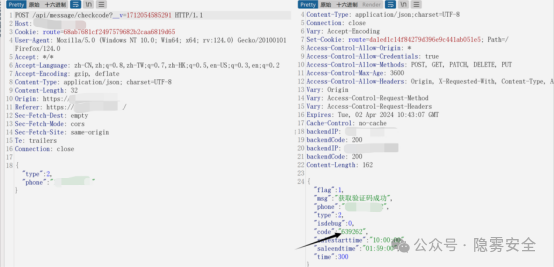 通过抓包 来查看回显包的得到验证码来任意用户登录。