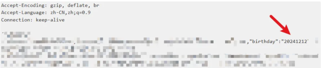 于是,我打开了Burp,重新查看用户信息修改接口,发现 birthday 字段还在!