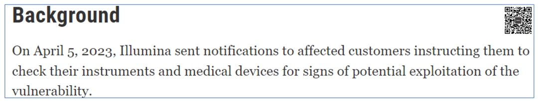 目前,FDA和Illumina并未受到该漏洞被利用的报告。