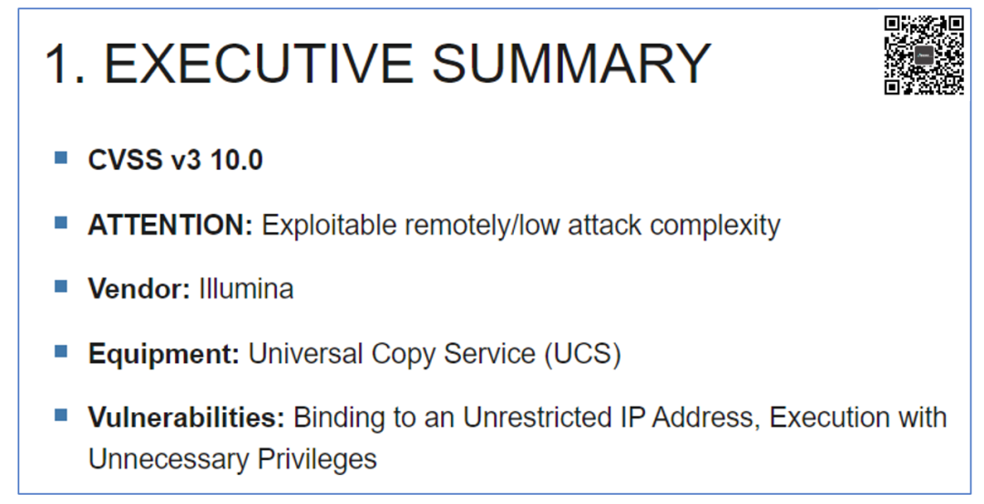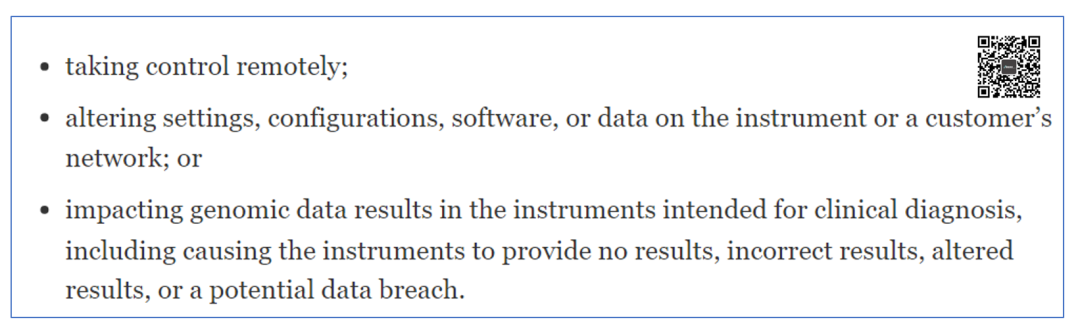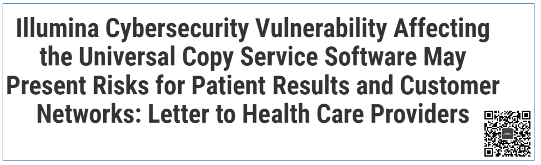 注1:https://www.fda.gov/medical-devices/letters-health-care-providers/illumina-cybersecurity-vulnerability-affecting-universal-copy-service-software-may-present-risks
