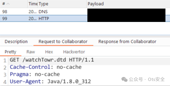 此请求包含我们最喜欢的 XXE 成功指标之一,即一个明显的 Java User-Agent,证明我们已成功触发该漏洞: