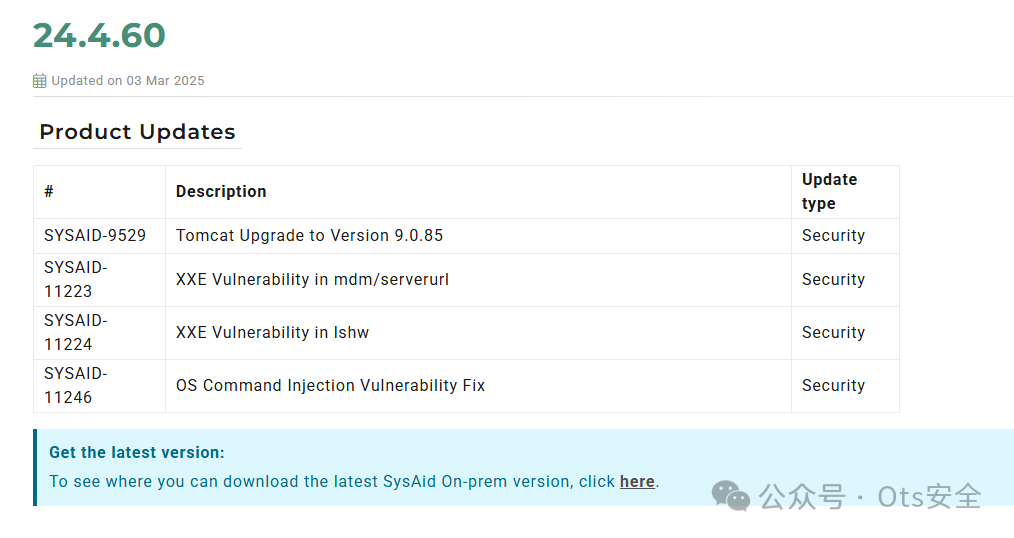 2025年3月3日 SysAid 发布24.4.60修复已报告漏洞的版本(未分配 CVE)