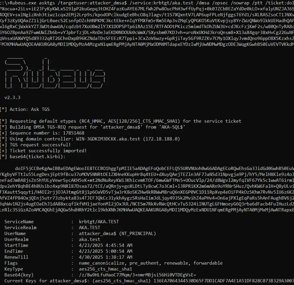 Akamai的研究表明,在近 91% 的审计基础设施中,域管理员组以外的用户拥有足够的权限来实施攻击。该漏洞的危险在于 Kerberos身份验证的处理方式:在此过程中,密钥分发中心 (KDC) 不仅会在票据中嵌入 dMSA 的安全标识符 (SID),还会嵌入被替换帐户及其关联组的标识符。