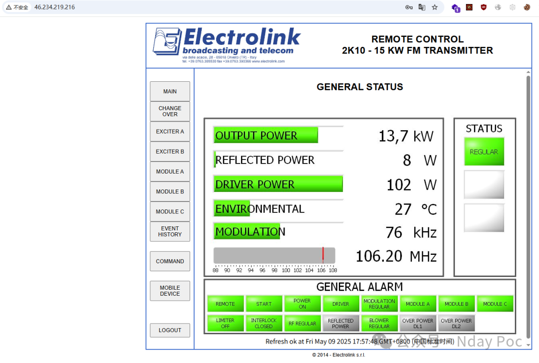 Electrolink 500W、1kW、2kW 中型 DAB 发射器 Web特定版本中存在一个凭据泄露漏洞,允许未经授权的攻击者以明文形式访问凭据。