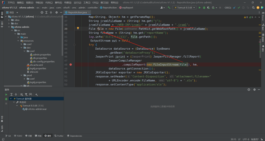 第 39 行,创建一个新的文件,路径是根路径和上面的路径进行拼接,接着从请求中获取reportName