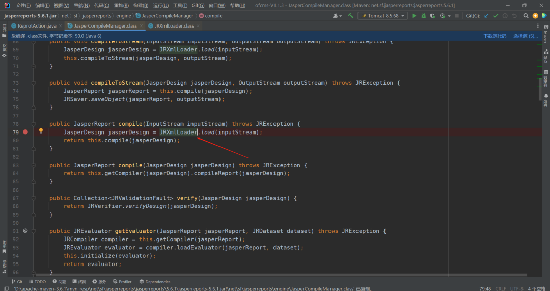 第 79 行,这里使用了JRXmlLoader.load()