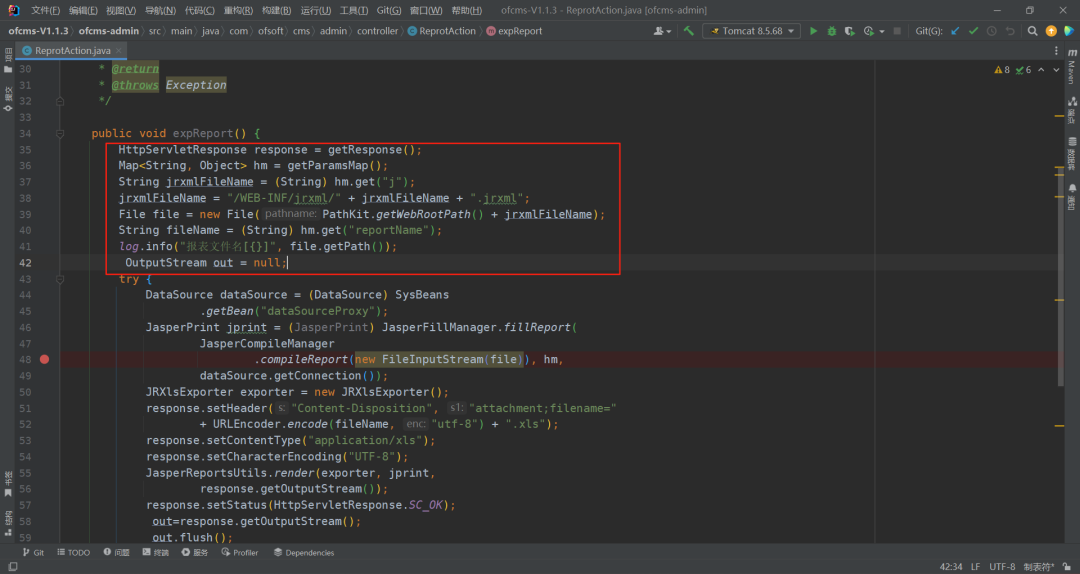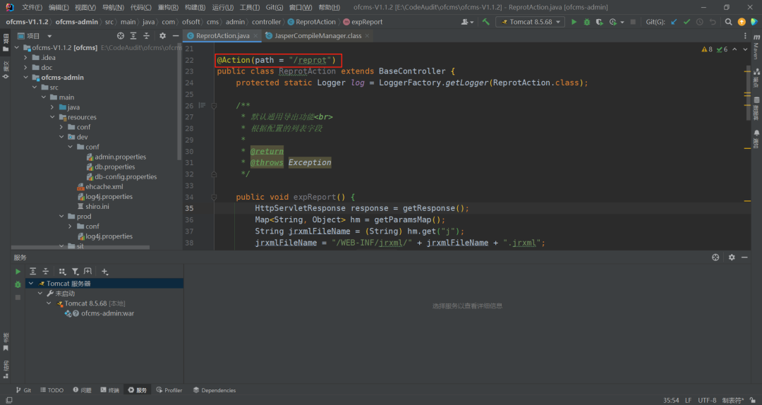 等这些函数,大多都是内部调用,唯一一处调用,文件位置位于:com/ofsoft/cms/admin/controller/ReprotAction.java
