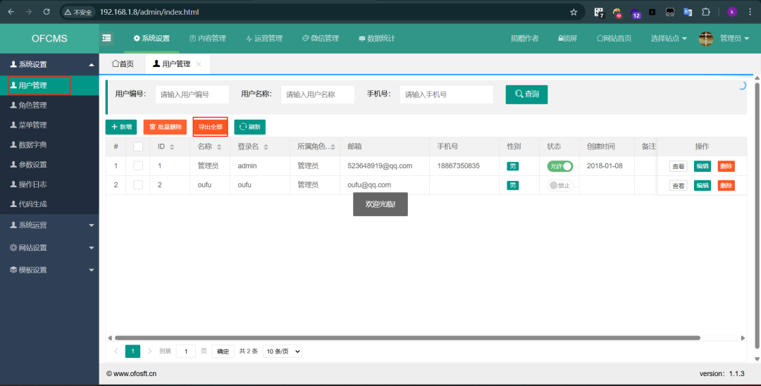 接口,根据功能和接口可以定位到:用户管理-导出全部。