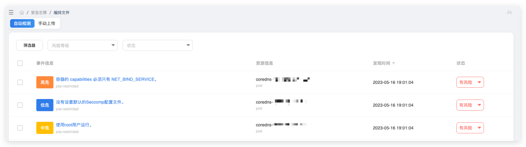 DevSecOps安全左移,对代码仓库构建产物的IaC(基础设施即代码)进行审查,在开发阶段对可能存在逃逸风险的配置项问题进行阻断,防止出现各类逃逸问题。