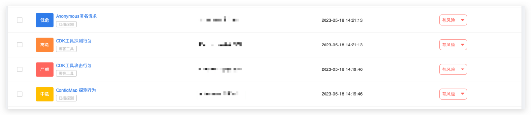 事中防护:通过对集群日志审计来发现横向移动行为,快速响应并隔离问题容器。