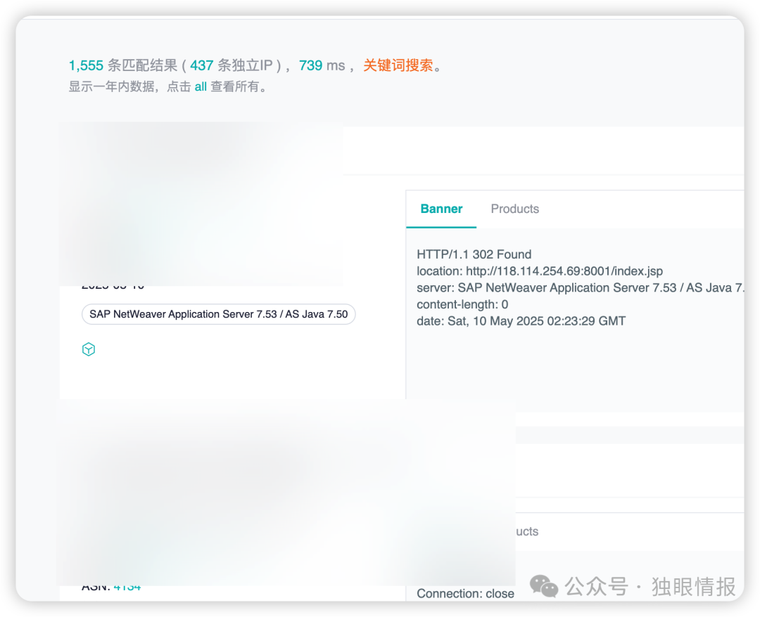 使用 Censys,我们识别出 20 个 ASN 和 8 个国家/地区的 114 个 IP 地址,这些 IP 地址的证书上共享相同的不常见 CN。使用 FOFA,我们又发现 17 个 ASN 和 19 个国家/地区的 464 个 IP 地址具有相同的属性。(此处省略一些内容,🐶保命)