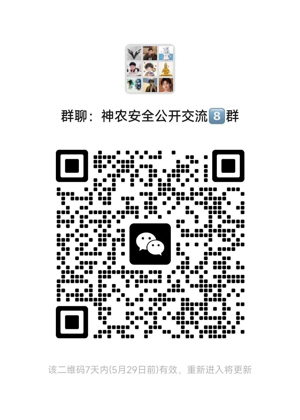 有需要的师傅们直接扫描文章二维码加入,然后要是后面群聊二维码扫描加入不了的师傅们,直接扫描文章开头的二维码加我(备注加群)