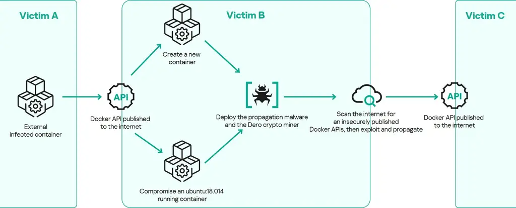FREEBUF5月22日消息,卡巴斯基实验室发现一种新型恶意软件,专门利用暴露在互联网上的Docker容器API发起自复制式Dero加密货币挖矿攻击。该恶意软件无需依赖命令与控制服务器(C2),即可通过感染的容器自动扫描并传播到其他存在漏洞的Docker主机,形成“容器僵尸网络”。