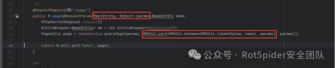 controller/NewsController 控制器存在SQL注入漏洞 代码位置:controller/NewsController,对传入参数无任何限制,MPUtil.sort()和MPUtil.between()触发SQL注入
