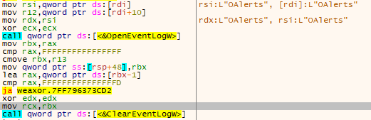 调用ClearEventLogW清除了185种日志。