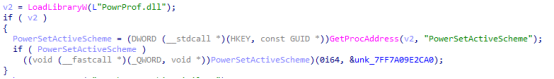 通过加载 PowrProf.dll 库并调用 PowerSetActiveScheme 函数,Mallox将系统的电源模式设置为高性能,以提高系统性能和响应速度。
