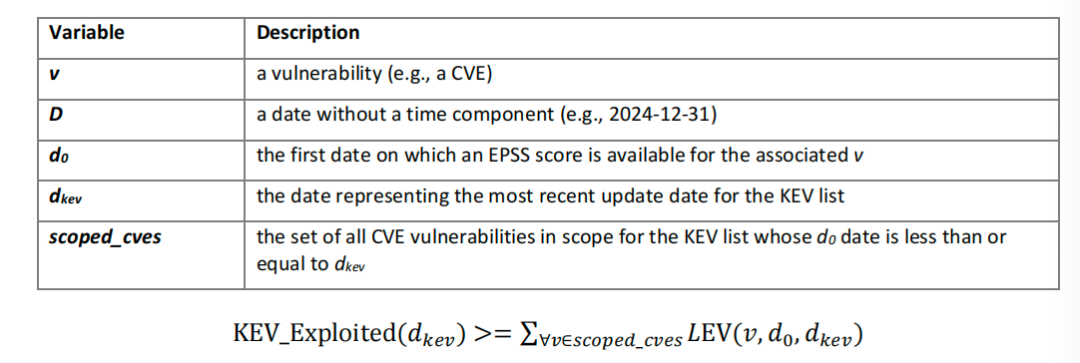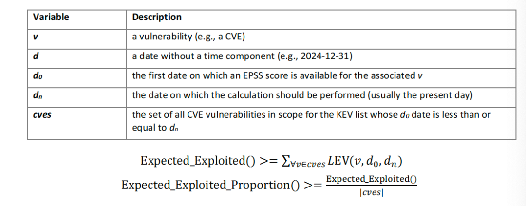 等式提供了在野观察到漏洞被利用的概率。这些概率可用来衡量被利用的