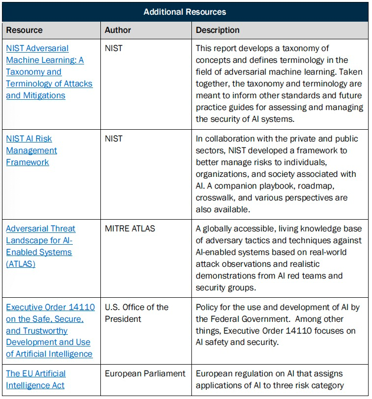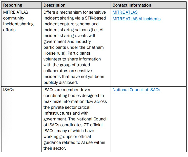 虽然该手册侧重于加强联合反恐委员会内部的合作,但也定义了适用于其他信息共享机制的关键信息类别(附录 C),如信息共享和分析中心(ISAC)。CISA 鼓励各组织采用该操作手册的指导意见来加强自身的信息共享实践,从而有助于采用统一的方法来应对关键基础设施中与人工智能相关的威胁。