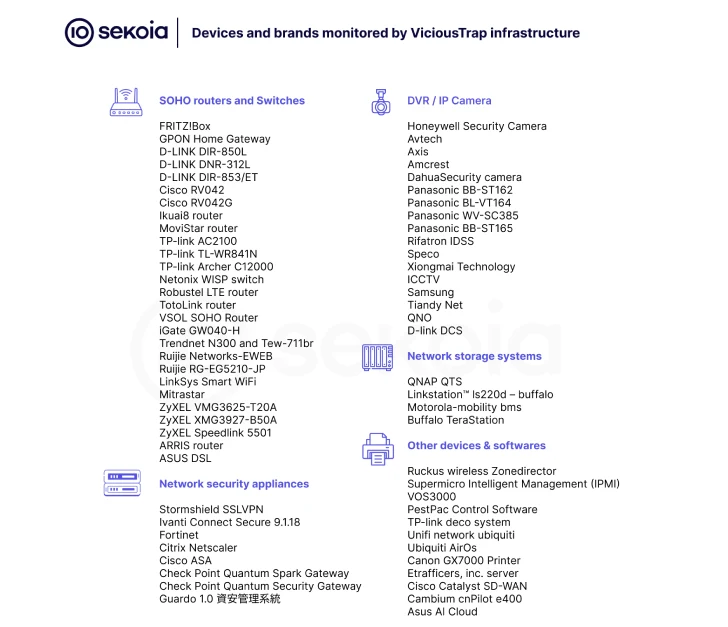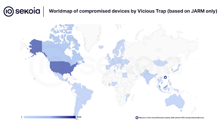 名为“ViciousTrap”的攻击者团伙被曝已攻陷全球 84 个国家近 5,300 台网络边缘设备,并将其构建成一个类似蜜罐的监控网络。