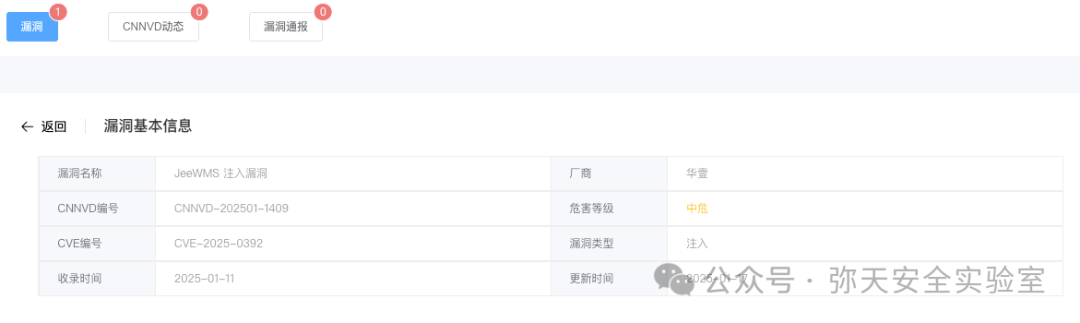 【成功复现】JeeWMS系统SQL注入漏洞漏洞(CVE-2025-0392)