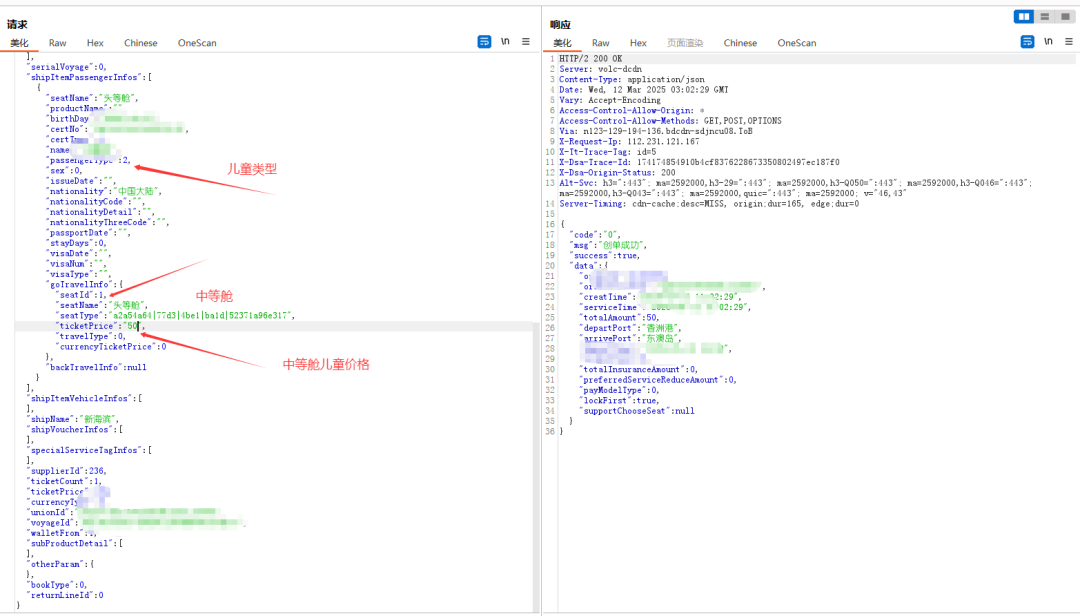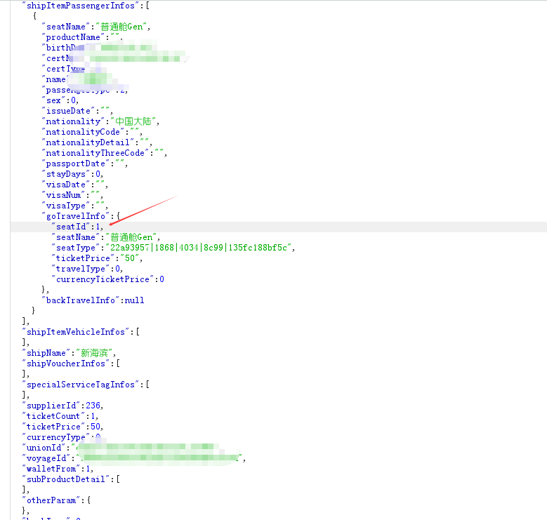 这个时候我想再提高一下危害, 既然订单的价格是由用户类型所关联的价格决定了,我是否可以自主的再次修改增值的业务参数呢?享受到最高的优惠, 船票分为上等中等, 利用普通订单价格享受高等舱位服务,通过对比普通舱订单和头等舱位订单定位到seatId