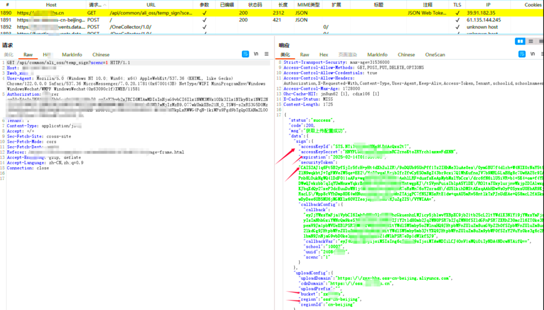 有了这些信息最大是危害是利用凭证登录这个阿里云桶从而接管整个小程序里面存储的图片信息,或者是利用脚本来进行覆盖小程序内所有的图片