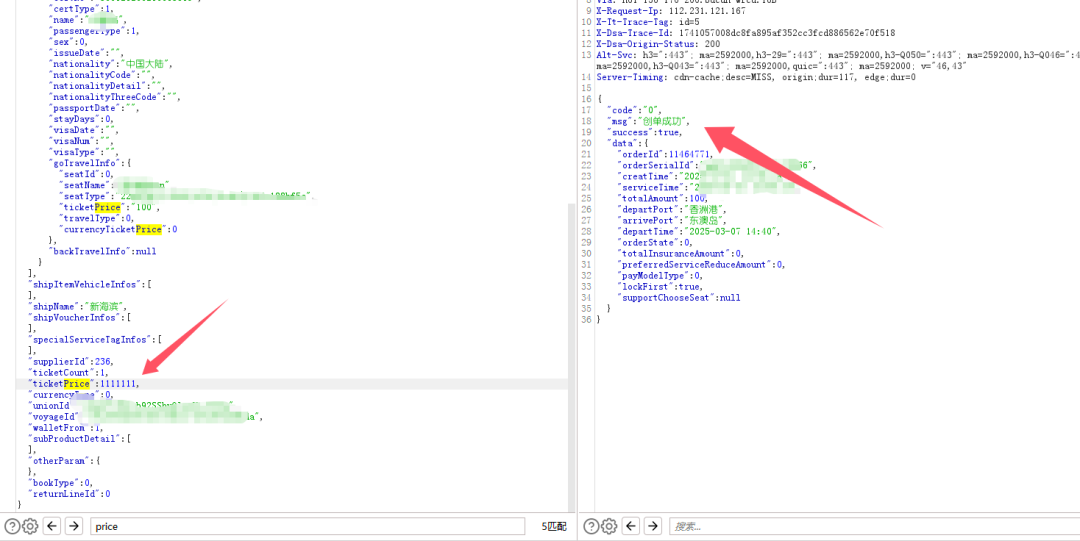 价格 每个字段都改变为最小的数字,再逐一发包创建新订单 但并未起效,订单也还是正常票价, 说明决定订单总价的字段并不是price