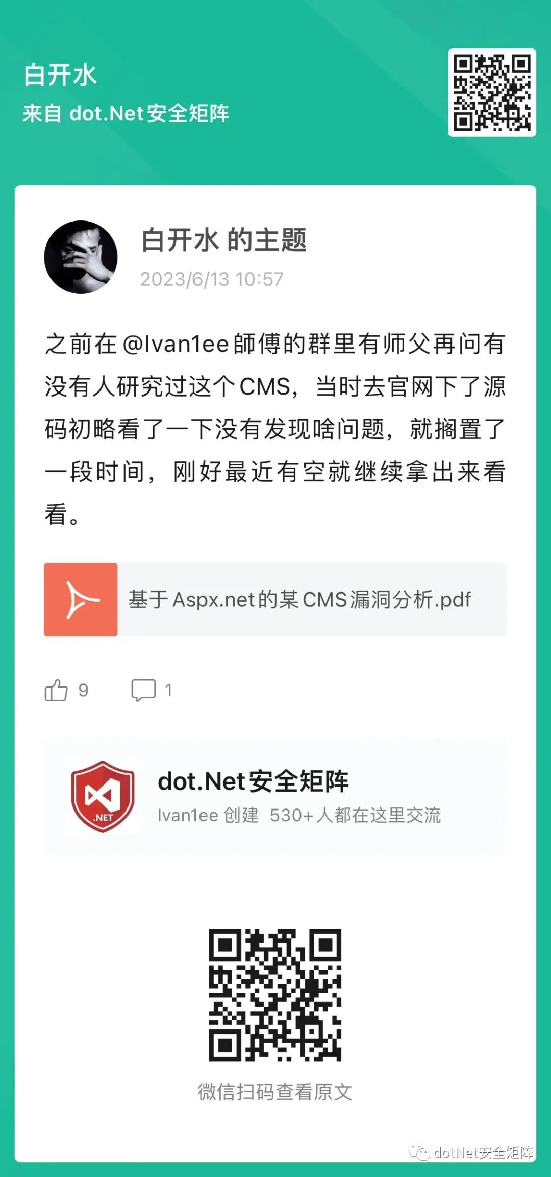 来自dotnet安全矩阵微信群@白开水师傅的分享