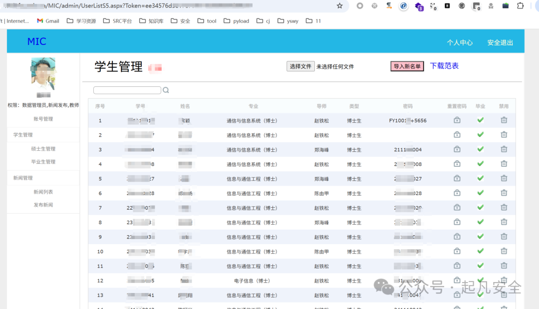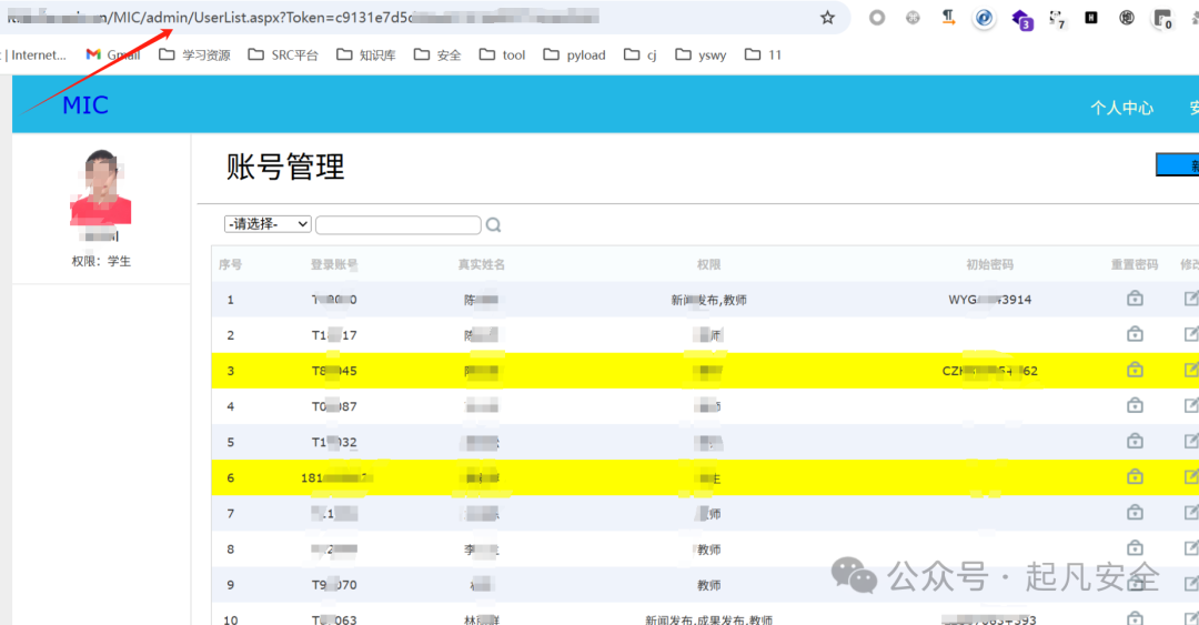 登录老师账号,发现了学生账号,可以用来测一波越权