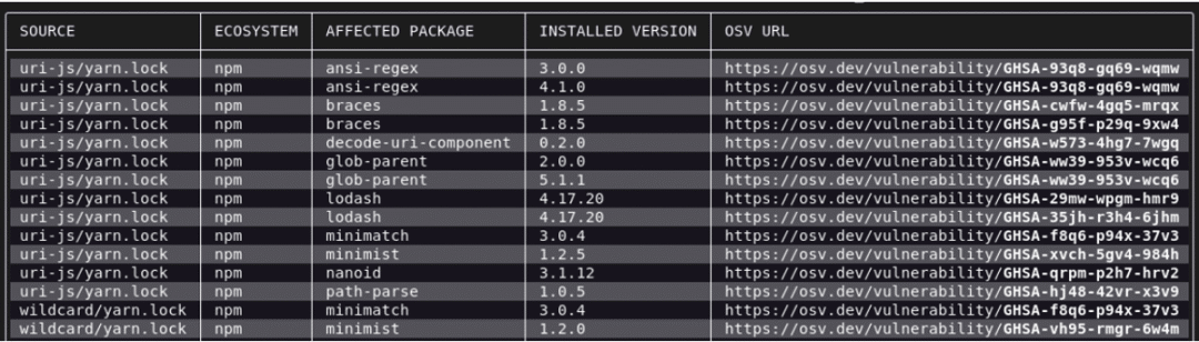 另几款软件组合分析(SCA)工具早在OSV Scanner发布之前就面市了,可高效地扫描静态软件查找开源编程代码漏洞。然而,谷歌开发的OSV借助OSV.dev开源漏洞数据库,适用于许多不同的生态系统。