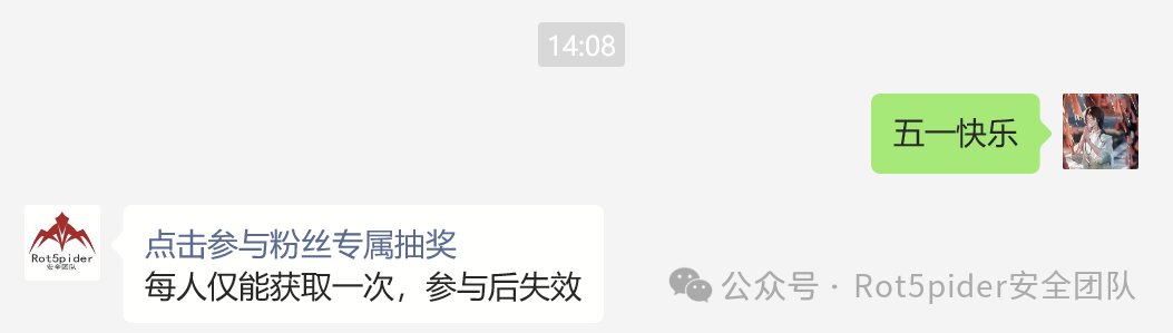 :关注公众号并回复关键词“五一快乐”获取漏洞提交入口链接。