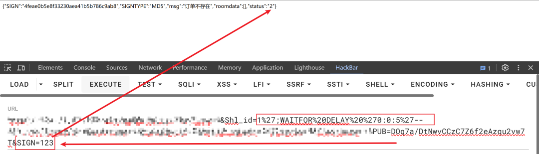 在这里直接拼接获取到了对应的SQL语句,并且进行了执行导致存在了前台SQL注入漏洞,但是这里sign一定要校验过去,程序才可以过if语句到达这个注入点。