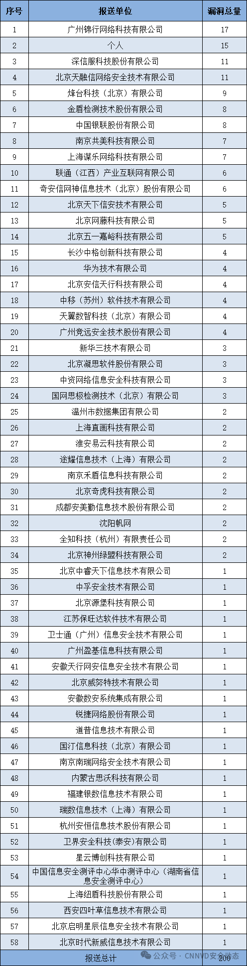 本周CNNVD接报漏洞200个,其中信息技术产品漏洞(通用型漏洞)192个,网络信息系统漏洞(事件型漏洞)8个。